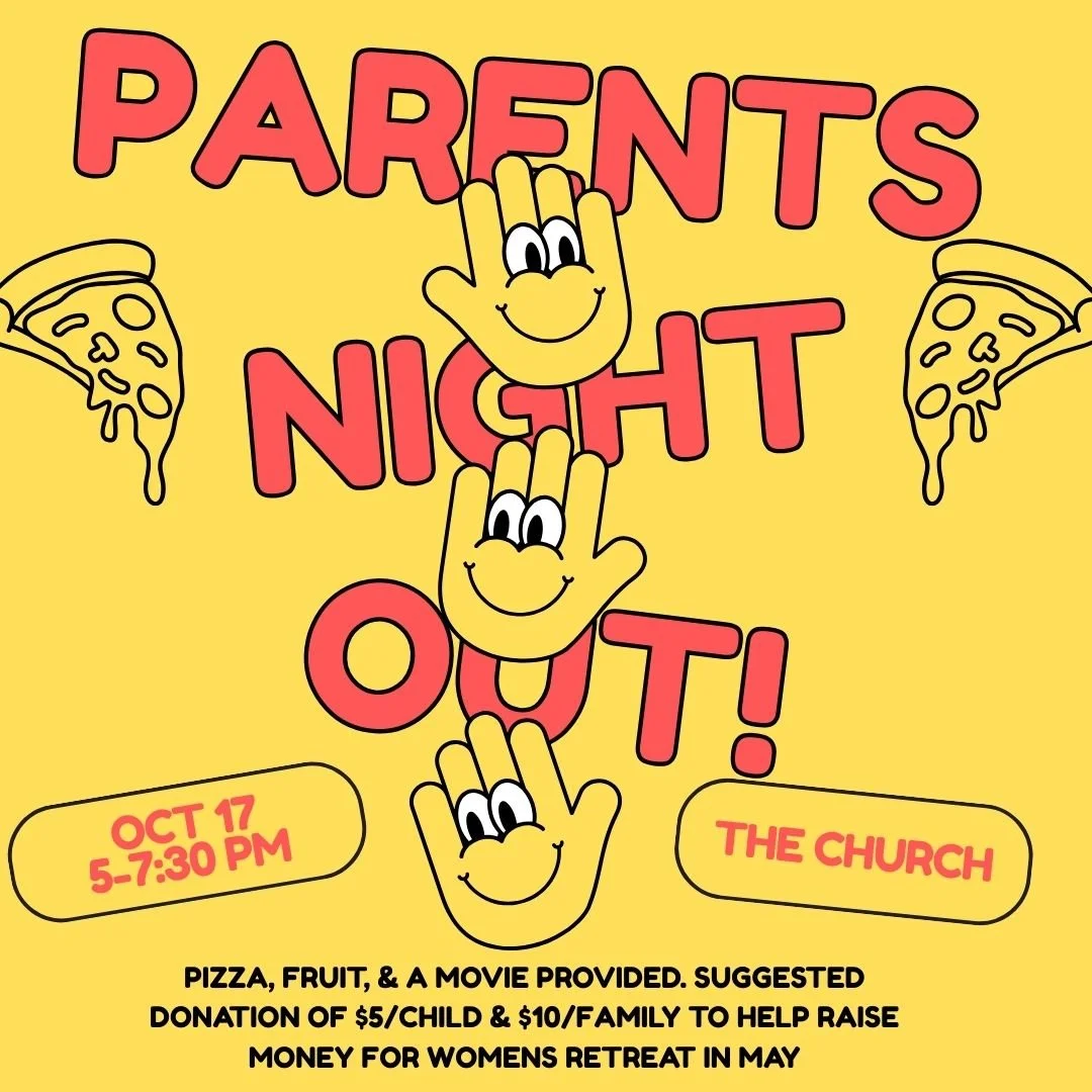 Parents, drop off your children at 5:00 pm and pick up at 7:30 pm. Pizza, fruit and a movie in the toddler, pre-school and youth room will be provided. Our Women’s Ministry Team will be volunteering with childcare. We’d appreciate a suggested donation of $5/child & $10/family to help us raise money for our retreat in May.